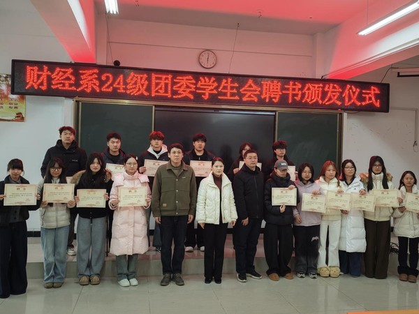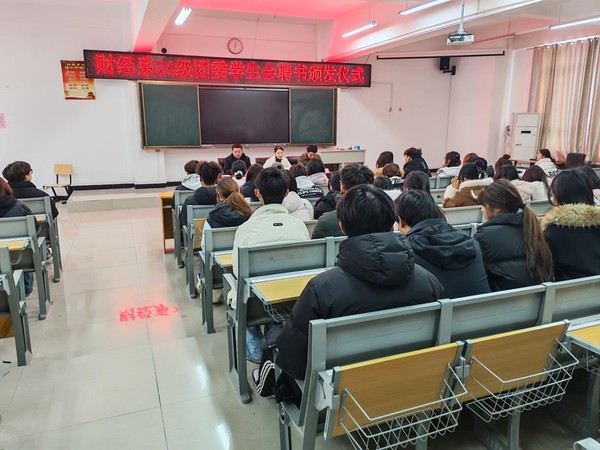 为表彰24级团委学生会成员,激励全体财经学子凝心聚力再启新篇,12月18日上午十点,财经系24级团委学生会聘书颁发仪式于崇德楼2319阶梯教室顺利举行。财经系党总支副书记韩冰、系团委负责人出席本次仪式,团委学生会全体成员齐聚一堂,共同见证这一意义非凡的时刻。